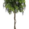 Enjoy the warm and colorful design of this breathtaking South American beauty. Tiny delicate pastel petals adorn this slender vine covered tree. A blend of lush green ovate leaves grace the top, center, and bottom of this enchanting creation. The twisting vines add an authentic touch to the entire trunk. A simple planter overflowing with greenery is a nice addition to this gorgeous tree.Â