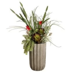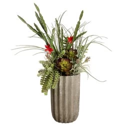28″Hx20″Wx20″L Succulents in Fluted Cement Pot Green Red